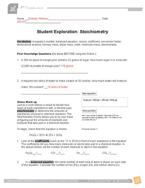 Download Student Exploration Stoichiometry Gizmo Answers Key PDF Library Binding